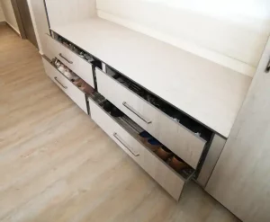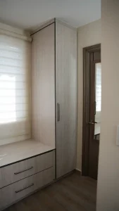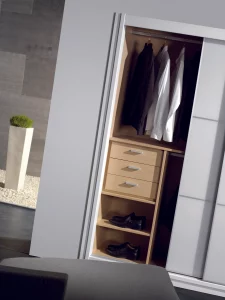 Ofrecemos una amplia variedad de opciones en materiales, acabados y sistemas de organización para que cada prenda y accesorio tenga su lugar. Haz de tu vestidor un espacio práctico, elegante y funcional con nuestros diseños a medida.